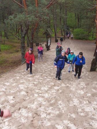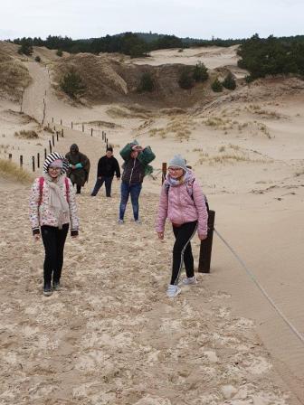 Po dotarciu do Czołpina, ścieżką dydaktyczną, grupa wyruszyła w stronę Wydmy Czołpińskiej, skąd rozpoczęła się trasa na wydmy. Przedzierając się przez wzniesienia usypane z piasku, można było podziwiać urokliwe krajobrazy ciągnących się wydm. Choć, na początku trasy uczestnikom wyprawy towarzyszył lekki deszcz, to nie zepsuł on wrażeń oglądanych krajobrazów. Z plaży, grupa wędrowców dotarła do wyjścia, które prowadziło do Latarni Morskiej w Czołpinie. Z wysokości około 25 metrów, z tarasu widokowego latarni można było podziwiać niesamowite widoki rozciągających się ruchomych wydm, oddzielających jezioro Łebsko od morza.