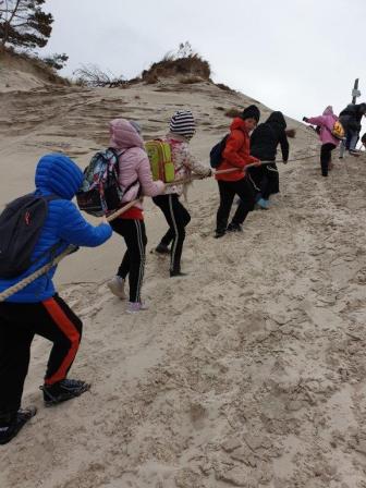 W środę 15 maja br. uczniowie z klas IV a i IV b udali się na długo oczekiwaną wycieczkę klasową. Celem wycieczki był Słowiński Park Narodowy, jeden z 23 parków narodowych w Polsce i obok Wolińskiego Parku Narodowego drugi park nadmorski. Krajobraz tego obszaru ukształtowany został przez trzy czynniki: wiatr, fale i przybrzeżne prądy morskie. Park ten utworzony został dla ochrony jezior przybrzeżnych, bagien, torfowisk, łąk i lasów, a przede wszystkim wydmowego pasa mierzei z unikatowymi w Europie wydmami ruchomymi. Symbolem parku jest mewa srebrzysta. Ranga przyrodnicza tego parku jest bardzo duża.