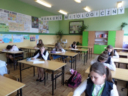 W ciągu pięćdziesięciu minut uczniowie rozwiązywali test zawierający trzynaście zadań otwartych. Udzielając odpowiedzi, należało wykazać się szeroką wiedzą z zakresu mitologii – znajomością bóstw, herosów i bohaterów greckich, mitycznych królów Krety, Myken, Koryntu, Itaki i Tracji, wiedzieć, że atrybutem Zeusa były pioruny, Hestii – ogień, a Temidy – waga, kaduceusz wiązać z Hermesem, a harfę z Orfeuszem.