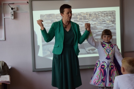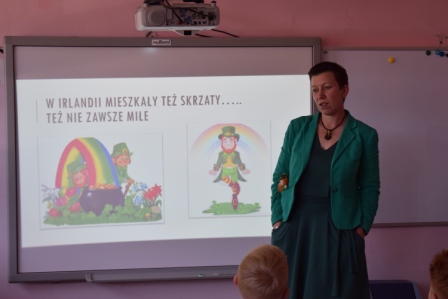 W ostatni czwartek maja (29.05.2019), gościliśmy w naszej szkole Panią Justynę Mazurek – Schramm z Fundacji Kultury Irlandzkiej z Poznania. Pani Schramm, we współpracy z Ambasadą Irlandii, od wielu lat popularyzuje kulturę Zielonej Wyspy angażując się w szereg akcji i przedsięwzięć w całej Polsce. Specjalnie dla uczestników projektu English Teaching Avctivities oraz innych uczniów klas gimnazjalnych prowadziła warsztaty kulturowe nt. Irlandii. Zapoznaliśmy się z najważniejszymi faktami z zakresu historii, życia i kultury Republiki Irlandii.