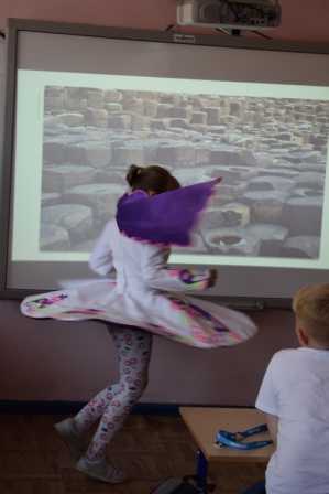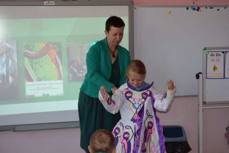 Dzięki uprzejmości naszego gościa, najmłodsi uczniowie z klas I A oraz I C również mieli okazję na niecodzienną lekcję języka angielskiego. Dla nich przeprowadzone zostały warsztaty z motywami legend i baśni irlandzkich. Uczniowie z zapartym tchem słuchali niezwykłych opowieści, do których wykonywali później prace plastyczne.
