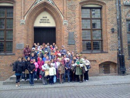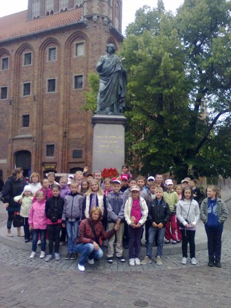 Do miasta Mikołaja Kopernika dotarliśmy o godz. 9.00. Pobyt w Toruniu zapoczątkowała wizyta w Planetarium. Statkiem kosmicznym „wyruszyliśmy” w niezwykłą podróż, podczas której zwiedziliśmy wszystkie planety Układu Słonecznego. Następnie przyszedł czas na zwiedzanie miasta. Pan Przewodnik ciekawie opowiadał o historii Torunia i jego zabytkach. Wąskimi uliczkami udaliśmy się na Rynek. Tam podziwialiśmy Ratusz, a przy Pomniku Mikołaja Kopernika zrobiliśmy sobie pamiątkowe zdjęcie. Później dotarliśmy do Domu Mikołaja Kopernika oraz średniowiecznych murów obronnych i ich najciekawszego fragmentu – Krzywej Wieży. Nagle poczuliśmy zapach świeżych ciasteczek. To był znak, że przyszedł czas na degustację aromatycznych toruńskich pierników i zakup upominków, dzięki którym zabytki Torunia na długo pozostaną w naszej pamięci. Nasz pobyt w Toruniu zakończył rejs statkiem po Wiśle. Podczas tej wyprawy obserwowaliśmy urzekającą roślinność przybrzeżną oraz wspaniałe widoki Torunia. O godz. 14.00 udaliśmy się do pięknego miasta – Ciechocinka. W czasie spaceru ulicami miasteczka naszą uwagę przyciągnęły śliczne dywany kwiatowe. Kwiaty tam posadzone tworzyły piękne wzory, ciekawe napisy (np. EURO 2012) i lśniły wszystkimi barwami tęczy. Odpoczywaliśmy przy fontannie, do której wrzucaliśmy drobne pieniążki. Zwiedzając tężnie, dowiedzieliśmy się o uzdrowiskowych właściwościach solanek. Teraz z jeszcze większą fascynacją wdychaliśmy świeży jod. Wielki zegar kwiatowy przypomniał nam, że pora wracać do domu.