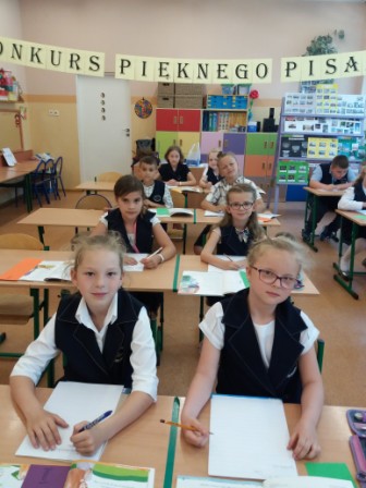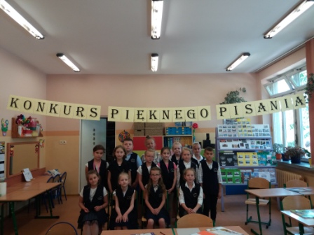 Dnia 5 czerwca 2019 r. w klasach I – III odbył się Konkurs Pięknego Pisania. Celem konkursu jest rozpowszechnianie wśród uczniów sztuki kaligrafii, czyli sztuki pięknego pisania. Przez cały rok uczniowie przygotowują się do tego konkursu pisząc starannie, kształtnie i estetycznie w swoich zeszytach przedmiotowych.