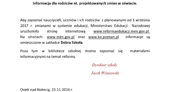 Administratorem danych osobowych w rozumieniu ustawy o ochronie danych osobowych jest: Szkoła Podstawowa im. Stanisława Staszica, 89-333 Osiek nad Notecią, ul. Szkolna 2