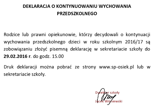 Administratorem danych osobowych w rozumieniu ustawy o ochronie danych osobowych jest: Szkoła Podstawowa im. Stanisława Staszica, 89-333 Osiek nad Notecią, ul. Szkolna 2