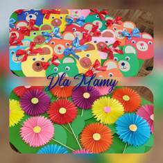 Każde dziecko w przedszkolu wie, że 26 maja naszym Kochanym Mamom składa się życzenia. W związku z tym ważnym wydarzeniem od kilku tygodni wytrwale uczyły się wierszyków, piosenki i tańca. Wielu ujawniło swój talent, wykonując związane z tym niespodzianki. Starsze dzieci narysowały portret swojej Mamusi i wykonały dla niej serduszko – zawieszkę. Z kolei młodsze przedszkolaki przygotowywały laurkę – misia oraz piękne wiosenne kwiatuszki.