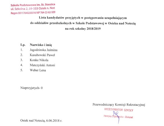 Administratorem danych osobowych w rozumieniu ustawy o ochronie danych osobowych jest: Szkoła Podstawowa im. Stanisława Staszica, 89-333 Osiek nad Notecią, ul. Szkolna 2