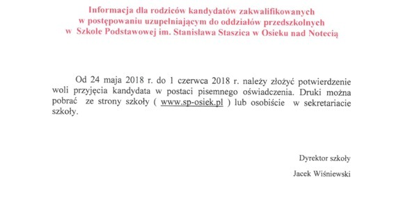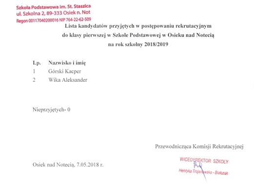 Administratorem danych osobowych w rozumieniu ustawy o ochronie danych osobowych jest: Szkoła Podstawowa im. Stanisława Staszica, 89-333 Osiek nad Notecią, ul. Szkolna 2
