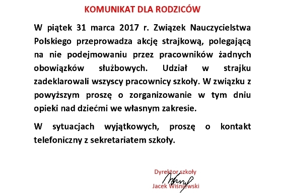 KOMUNIKAT W SPRAWIE REKRUTACJI DO KLASY PIERWSZEJ NA ROK SZKOLNY 2017/18.
