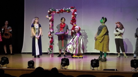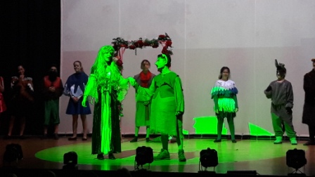 Na przerwie między lekcjami zauważyłam coś fascynującego. W tej szkole uczniowie na przerwach czytają książki, ćwiczą grę na instrumentach muzycznych (widziałam uczniów ćwiczących grę na gitarach), po prostu rozwijają swoje pasje. A propos pasji. Szkoła posiada prawdziwy teatr ze sceną i widownią na 350 miejsc. Uczniowie tej szkoły mają możliwość sprawdzić swój talent aktorski na prawdziwej scenie. To właśnie tutaj mieliśmy przyjemność obejrzeć sztukę , oczywiście w języku angielskim, wystawioną przez uczniów szkoły, pod tytułem Shrek. Jestem pełna podziwu dla młodych aktorów. Gratuluję profesjonalizmu i idealnego języka angielskiego.