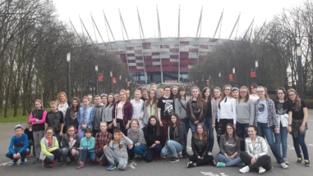 Droga powrotna wiodła przez ciekawe miejsca w Warszawie: Wilanów, Belweder i Park Łazienkowski z pomnikiem Chopina, Sejm, Pałac Kultury i Nauki. Wszystko to obserwowaliśmy z autokaru, a nasza Pani opowiadała o poszczególnych obiektach. Na koniec czekała niespodzianka – Stadion Narodowy! Wysiedliśmy, by móc zrobić zdjęcia i zobaczyć stadion z bliska. Bardzo dziękujemy.
