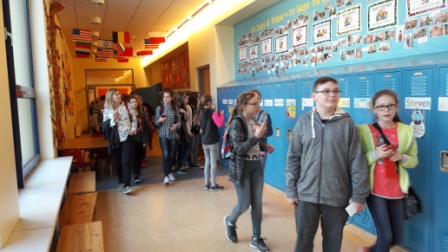 Około 80% uczniów tej szkoły stanowią cudzoziemcy, a tylko 20% Polacy, dlatego język angielski, to jedyny język jakim mogą się ze sobą porozumiewać. Zwiedziliśmy szkołę podziwiając jej wielkość, nowoczesne wyposażenie, klasopracownie przypominające pokoje w naszych domach, kilka sal gimnastycznych, basen i cudowną stołówkę, jak restaurację.